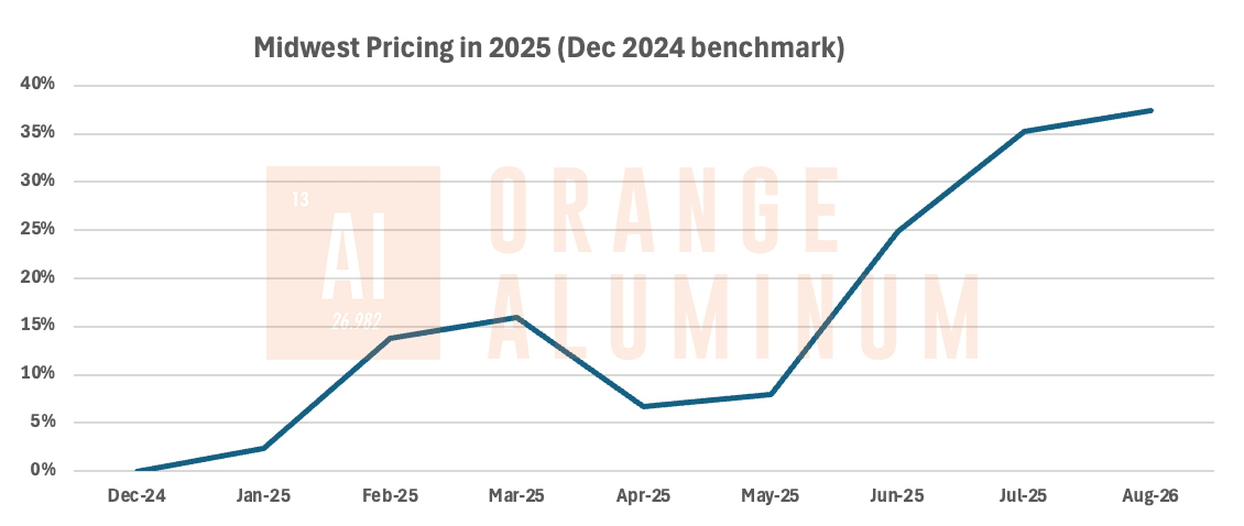 Earlier this year, the 25% tariff introduced some initial market volatility, but conditions began to level off by spring. However, the recent 50% tariff escalation has reignited price pressures, particularly in key benchmarks: