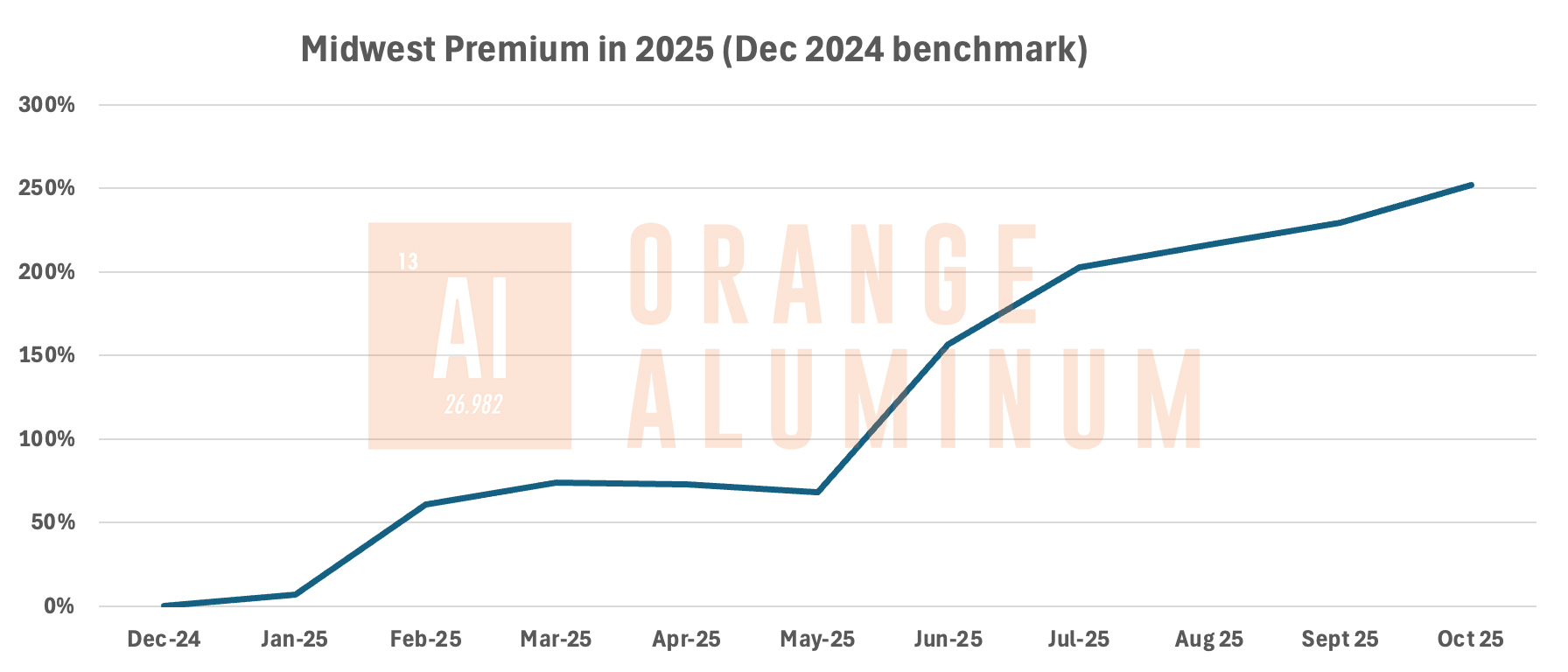 - Midwest Transaction Price – A leading indicator of aluminum pricing in the U.S., this has seen a marked increase as demand shifts to domestic supply.