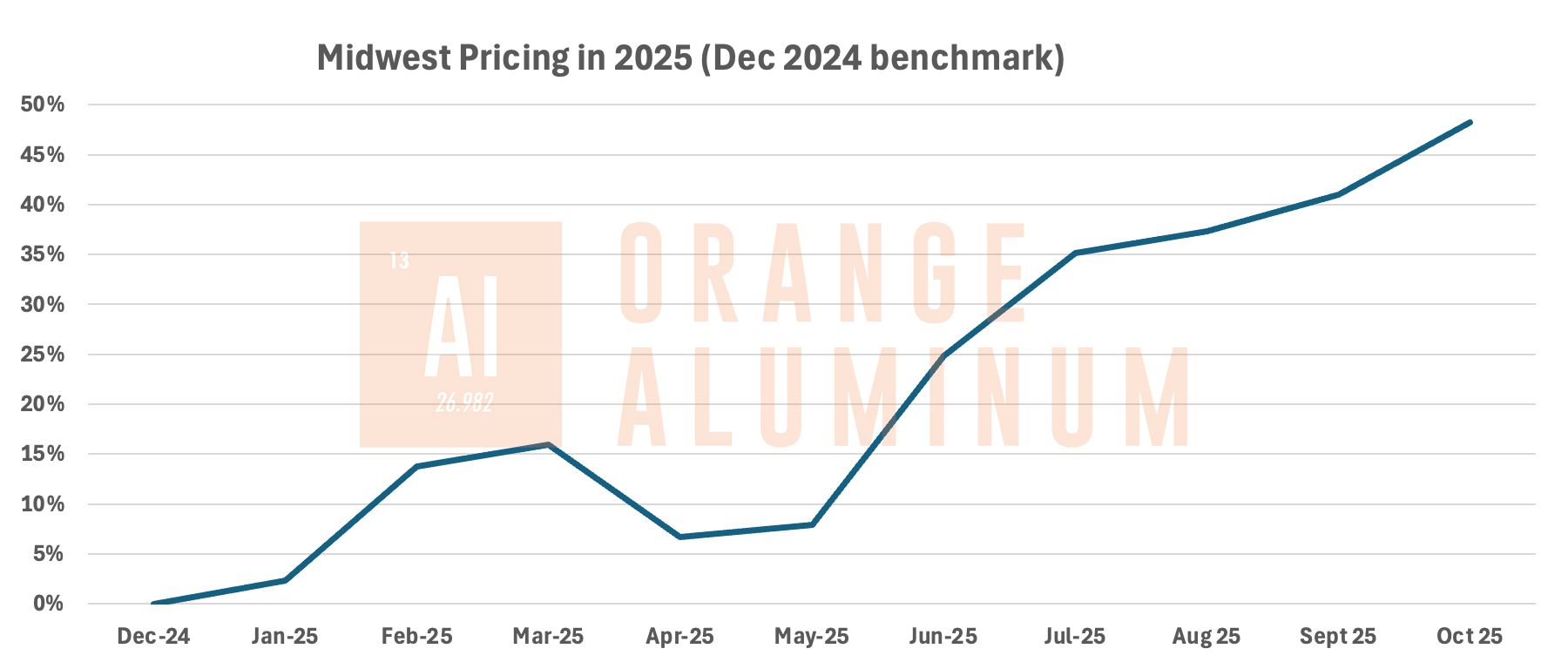 Earlier this year, the 25% tariff introduced some initial market volatility, but conditions began to level off by spring. However, the recent 50% tariff escalation has reignited price pressures, particularly in key benchmarks: